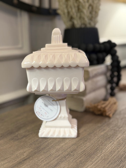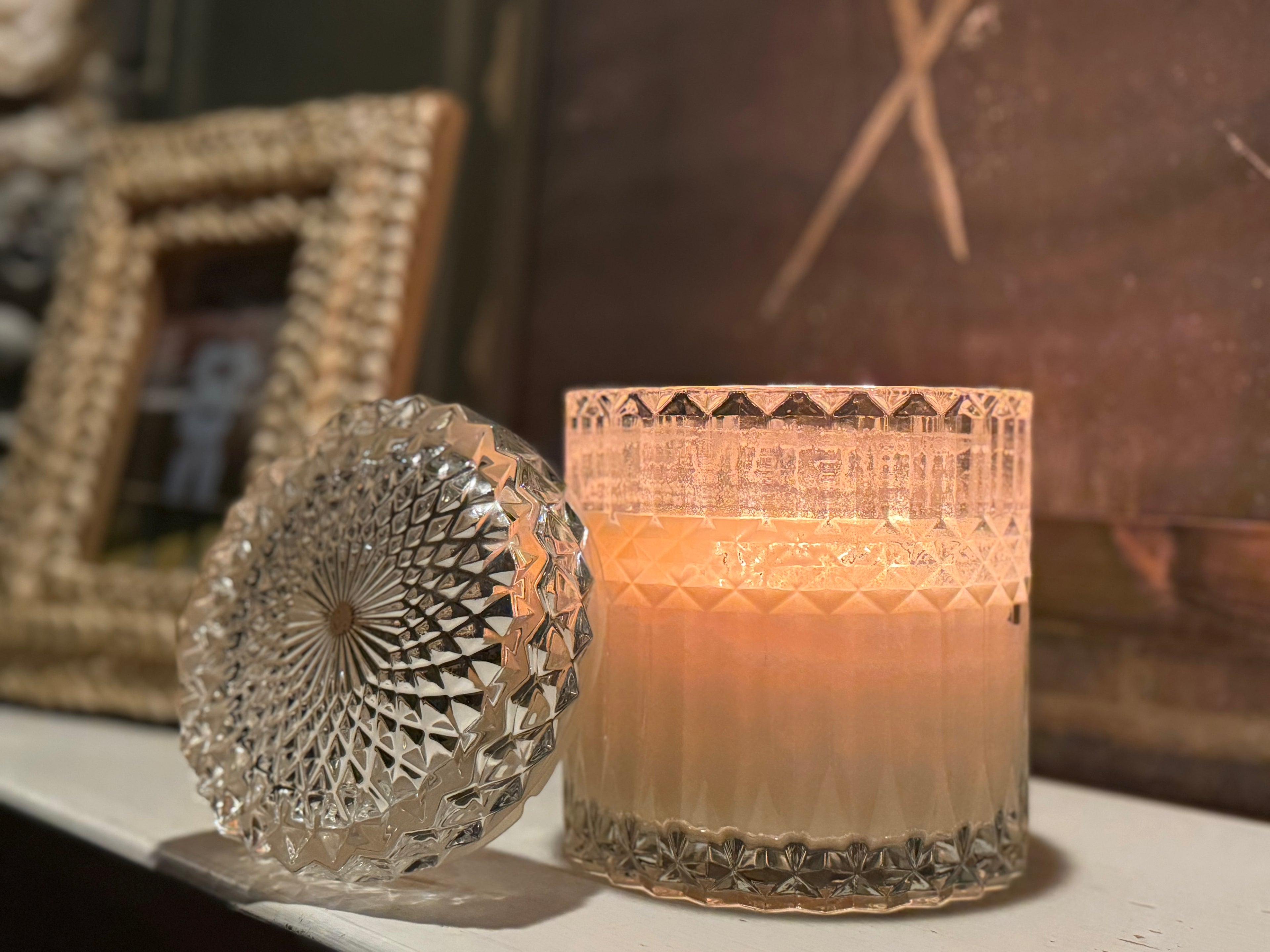 Every Nest and Noel candle is thoughtfully hand-poured into a piece of vintage glassware — from delicate candy dishes and wedding boxes to heirloom stemware and timeless treasures.